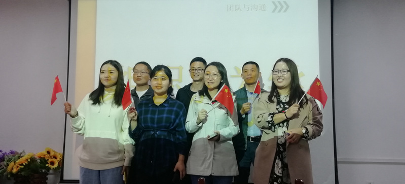 马文静、黄勇老师根据课程内容,组织团队练习,小组成员齐唱红歌,祝贺祖国70华诞。