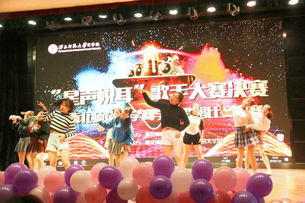 一段热辣的开场舞瞬间点燃了现场的气氛,接着八位选手按照顺序依次上场,他们或清澈嘹亮,或低沉磁性的嗓音让每个人沉醉不已。浩琦组合活泼轻快的台风给大家留下深刻的印象,那首动听的《画》久久留在听众的耳中。几位男生的动人歌喉更是得到了所有人的认可,为他们加油打call的欢呼浪潮一波未平一波又起。微信线上的互动也是热火朝天,同学们“男神”、“女神”的呼喊几乎刷屏。还有同学不惜重金霸屏为自己支持的选手加油。现场气氛十分热烈。