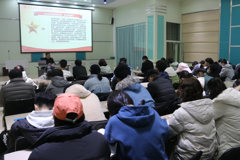 此前,为了使党的十九届五中全会学习覆盖全院师生,公司党委于2020年11月19日组织全院教师、员工党员集体收看了教育部陈宝生部长作的“教育系统党的十九届五中全会精神宣讲报告会”;于11月21—27日,组织各班开展了观看讲座视频、集体学习《公告》、分享学习体会等多种方式的“学习十九届五中全会精神”主题团日活动。