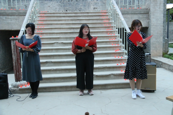 活动分为展演与展览两部分,观众在聆听朗诵的同时,也可欣赏悬挂两旁的书画作品。朗诵环节共五组同学参加,刘琛琛和董楠带来《我以我心鉴中华》,付元、李霞等同学深情朗诵了《我爱你中国共产党》,孙亚宁、王恺悦同学朗读了《祖国啊,我亲爱的祖国》,罗旭、严蓓莉、杨亦敏朗读了《一封家书》,吴德阳、邵茜雅等同学给大家朗诵了《可爱的中国》。最终,刘琛琛、董楠同学带来的《我以我心鉴中华》荣获一等奖。