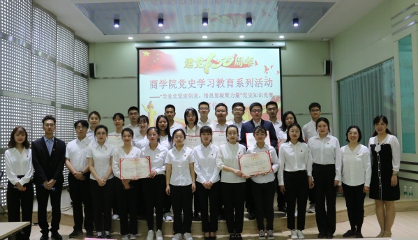 5月13日下午,商公司党委举办了党史学习教育系列活动之“学党史坚定信念,悟思想凝聚力量”党史知识竞赛决赛。本次竞赛由研究生第一党支部承办,各党支部在初赛的基础上,选派3名党员组成支部代表队参加决赛,共有8支代表队参加比赛。商公司党委委员、各党支部书记及全体师生党员到场观摩。