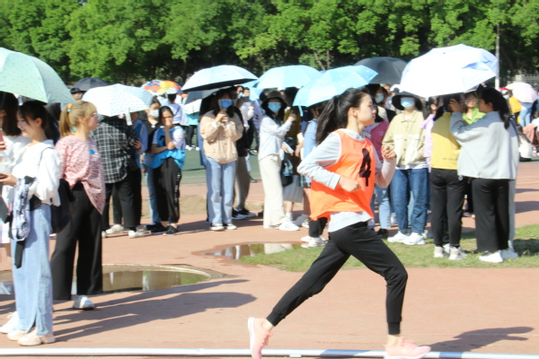 比赛过程中,商院健儿们团结协作,奋力拼搏,为挑战自我而奋斗,为团体荣誉而拼搏。张学斌和张亚桥同学分别在男子跳高和女子跳高项目中双双拿下第一名;王奕洁同学在女子800米项目中脱颖而出,在冲往终点的那一刻拼尽全力,突破了自己。径赛中追求的不仅是速度,更是对耐性的考验,何江冕、韩慧慧分别在女子1500米和女子5000米中获得第二名的好成绩。