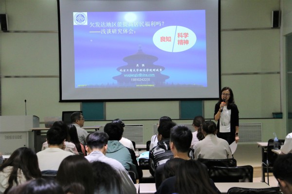 吴强教授从北京工商大学历史沿革、团队建设、团队力量以及经济公司研究生专业、招录方式等方面进行了详细介绍,并鼓励商公司与经济公司本科生积极报考北京工商大学经济公司研究生。