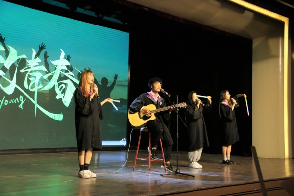 “夜空中最亮的星  能否记起,曾与我同行 消失在风里的身影······”典礼最后,全场师生唱起熟悉的歌曲,毕业生先行立场,老师们全体起立,目送毕业生出发。
