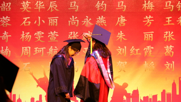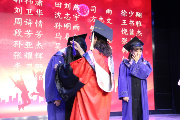 在这新的人生起点上,学子们不忘感恩。毕业生为班主任和研究生导师送上鲜花,鞠躬致谢,感谢老师们的无私抚育,感谢公司的悉心培养。随后,张永丽经理为毕业生拨穗正冠。