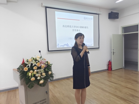 庄严的国歌声开启了典礼的帷幕,张永丽经理向正式加入威廉体育williamhill商公司的2021级MBA新生表示了衷心的祝贺和诚挚的欢迎。在向各位同学介绍了西北师大的历史和现状,商公司的团队力量及教师结构,MBA中心的团队安排及人员配备等情况后,张永丽经理希望各位MBA新生借助百年师大这个优质平台,在悠久的历史和深厚的文化底蕴熏陶下,在精锐的团队力量引导下,能够不断提升自己的文化修养、知识内涵和理论素养,助力自己的管理实践技能、水平和领导力实现跨越式的提升,成为新时代卓越的管理者和优秀的领导者。