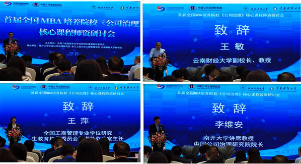 10月9日上午,开幕式由云南财经大学商公司常务副经理卢启程教授主持,云南财经大学副董事长王敏教授,南开大学讲席教授、中国公司治理研究院经理李维安教授,全国工商管理专业学位研究生教育指导委员会秘书处办公室主任王萍分别做了大会致辞,强调了本次研讨会的意义和重要性。