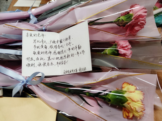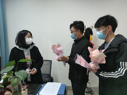 2021年12月22日,新春佳节到来之际,研究生第一党支部支委代表支部提前向老师们送上了元旦祝福。支部准备了鲜花、苹果及精心绘制的祝福卡片,以表达对老师过去一年辛苦耕耘和付出的感谢,并祝愿老师们身体健康、工作顺利。
