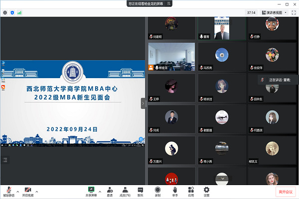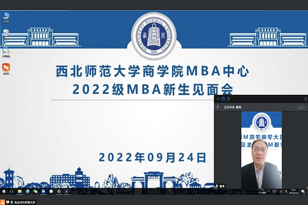 924日上午,商公司2022MBA新生见面会在线举行。商公司党委书记马科中老师、经理董青老师、副经理何迎朝老师、MBA项目主任黄勇老师出席见面会,2022级全体MBA新生在线参加,见面会由MBA中心主任杨金龙老师主持。