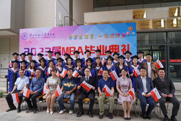 毕业典礼上,董青经理祝贺2023届MBA毕业生顺利毕业,希望同学们在未来的职业生涯和人生道路上谨记校训、院训,秉承西北师大MBA人的精神理念,成就自己的美好人生。张学鹏教授代表全院老师,为毕业生们表达了祝福,嘱托同学们要把握挑战与机遇,脱颖而出,成为商业精英,成就人生梦想,回馈社会和国家。 员工代表吕兴邦祝福毕业生们多钱善贾、钟鸣鼎食、海阔天空、神采奕奕、龙马精神;毕业生代表戴维斌代表全体毕业生,表达了对公司、公司、老师的感谢和祝福。
