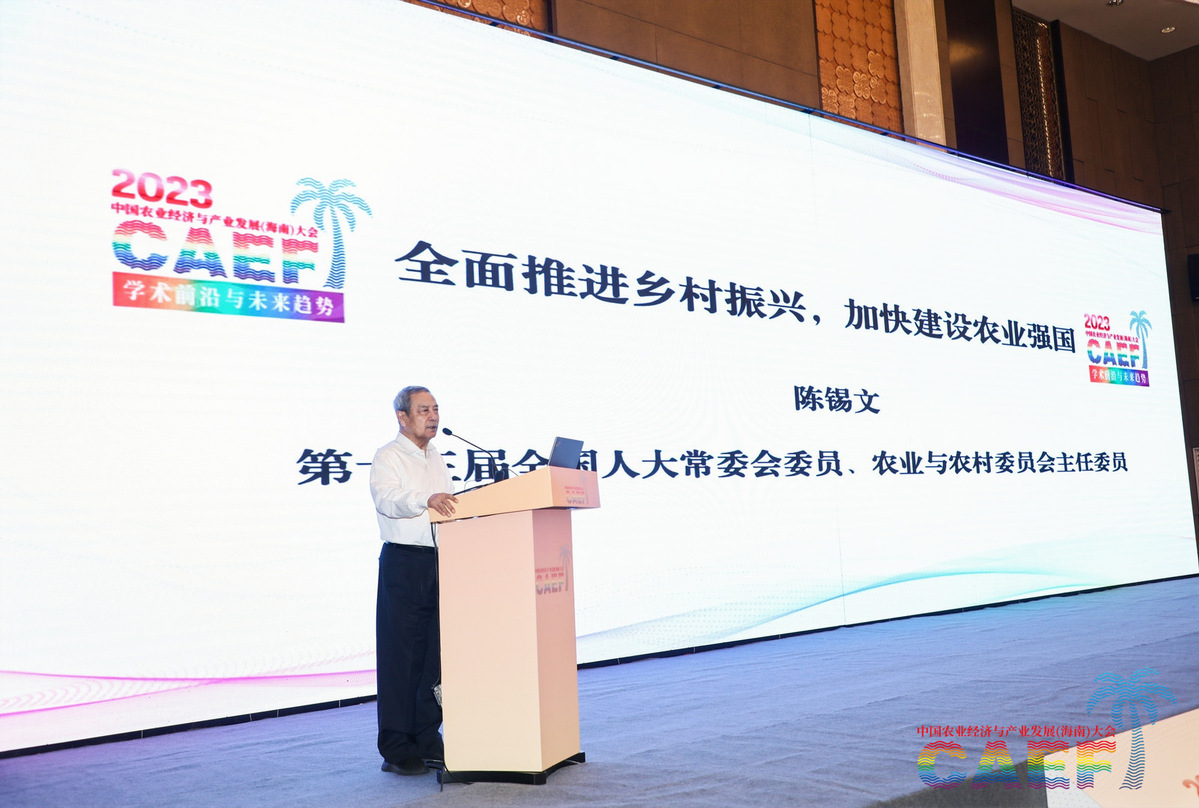开幕式由原农业部副部长、中国农业经济学会会长陈晓华主持,海南省人大常委会副主任过建春,中国农业技术经济学会会长、中国农业科公司原党组书记陈萌山分别致辞。会议邀请第十三届全国人大农业与农村委员会主任委员、原中央农办主任陈锡文,中国工程院院士、中国农业科公司原经理唐华俊作特邀报告,围绕全面推进乡村振兴、加快农业农村现代化和农业强国建设中面临的总体形势、问题挑战和首要任务进行了深入分析。