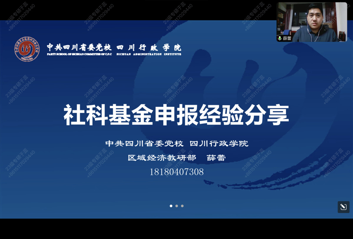 2023年11月23日,应威廉体育williamhill商公司邀请,中共四川省委党校区域经济教研部薛蕾讲师为公司教师在线作题为《社科基金申报经验分享》的学术报告。报告由薄慧敏老师主持,公司领导、专任教师共40余人在线聆听了报告。
