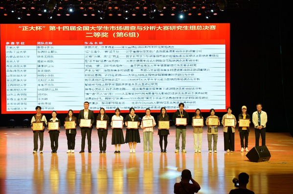 本次总决赛以小组赛和公开赛的形式开展,在“健康护卫队”全体成员前期的通力合作和充分准备,结合答辩现场生动的场景再现、快速的临场反应和良好的现场呈现下,通过与同组15支队伍的激烈角逐,以优异的成绩夺得正大杯第十四届市场调查与分析大赛研究生组总决赛全国二等奖。通过此次比赛,不仅培养了同学们的团队合作与沟通协调能力,也锻炼了团队成员的书面写作、统计调查、数据分析及汇报展示能力,提升了综合素质。