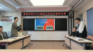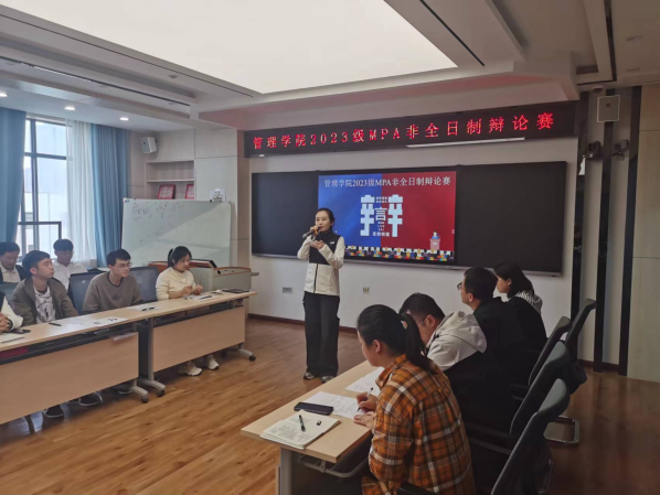2024年10月5日下午,2023级非全日制MPA辩论赛在致公楼10C 506室举行。四支参赛队伍分为正反两方,围绕“是否应该征收单身税”及“高薪能否有效遏制腐败”两大热点议题进行激烈辩论。本次辩论赛由2023级非全日制MPA研究生白瑞雪主持,白列湖、蔡泽山、孟辰晨、唐佳四位老师和2023级非全日制MPA研究生王军龙同学受邀担任评委。此次辩论赛吸引部分2024级MPA研究生前来“观战”,现场气氛热烈。