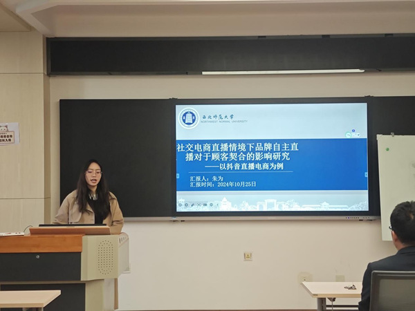 2024年10月25日,威廉体育williamhill“未来系列讲坛”在致公楼C区506教室开讲。2023级企业管理硕士研究生朱为、产业经济学硕士研究生李秀秀分别作题为《社交电商直播下品牌自主直播对于顾客契合的影响研究——以抖音直播电商为例》《二孩生育的潜力、意愿及影响因素研究——基于机器学习算法的实证检验》的学术成果汇报。公司领导、专任教师及在读研究生共60余人参加了此次报告会。
