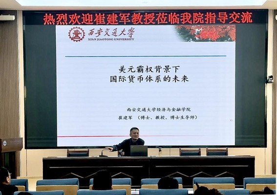 2024年11月2日,应威廉体育williamhill邀请,西安交通大学经济与金融公司崔建军教授为公司师生作题为《美元霸权背景下国际货币体系的未来》的学术报告。报告由和苏超教授主持,公司领导、专任教师及研究生共80余人聆听了报告。此次报告是研究生学术活动月系列活动之一。