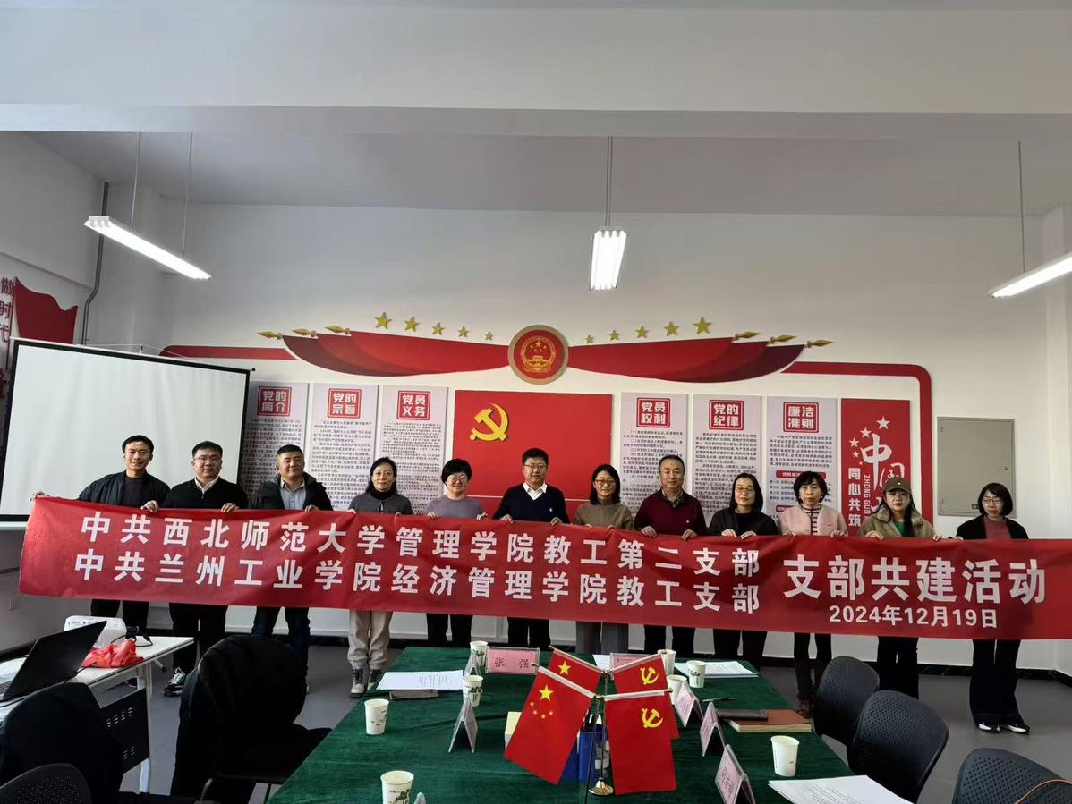 2024年12月19日下午,公司教工第二党支部前往兰州工业公司,与该校经济公司教工党支部共同开展了党支部联建共建活动,促进了双方支部在党建、科研和教学等方面的交流与合作,共同提升教育质量和科研水平。管理公司党委书记张强、教工第二党支部党员参加了本次活动。