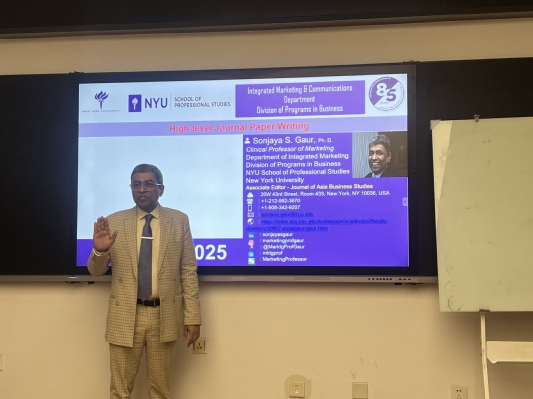 2025年3月27日上午,应威廉体育williamhill邀请,美国纽约大学(NYU)营销学教授Sanjaya Singh Gaur为公司师生作了题为《高水平国际期刊论文发表》的学术报告。报告由赵阳博士主持,公司科研副经理和苏超以及青年博士、硕士研究生共60余人参加了此次讲座。