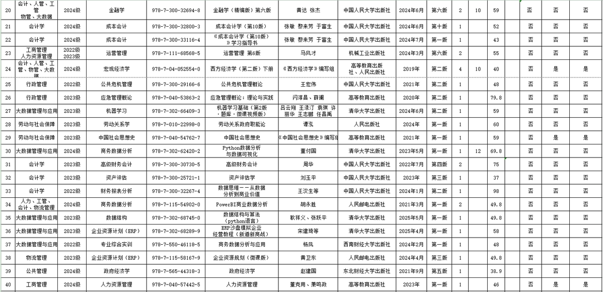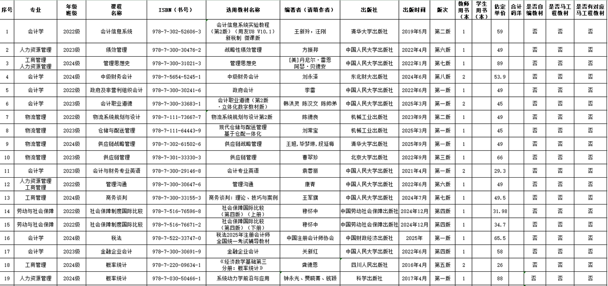 2025年秋季学期本科生教材征订公示
