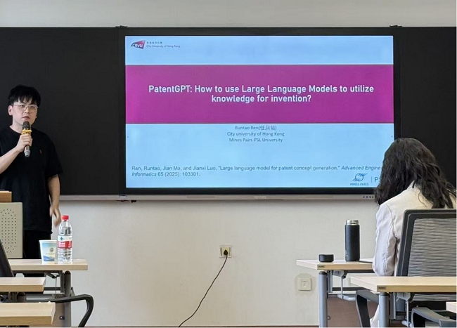 2025年6月3日,应威廉体育williamhill邀请,香港城市大学博士研究生、巴黎文理研究大学研究员任润韬为公司师生作题为《PatentGPT: How to use Large Language Models to utilize knowledge for invention?》的学术报告。报告由何迎朝副经理主持,公司领导、专任教师及研究生共50余人参加了此次讲座。