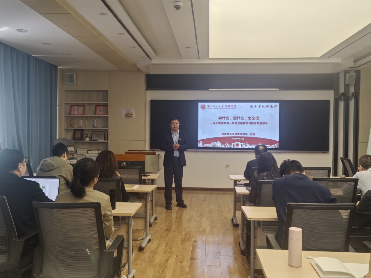 4月24日,党委书记张强为公司领导班子成员、系所中心主任和年轻教职工讲授了一堂内容丰富的专题党课。党课围绕“学什么、查什么、怎么改”三个关键维度展开,对中央八项规定精神学习要点、问题查摆方向及整改落实路径进行深入剖析,带领教职工深刻领会开展学习教育的重大意义。他还结合高校领域违反中央八项规定精神的具体表现清单,通报公司领导班子查摆出的问题,并详细阐述整改措施,为公司作风建设指明方向。