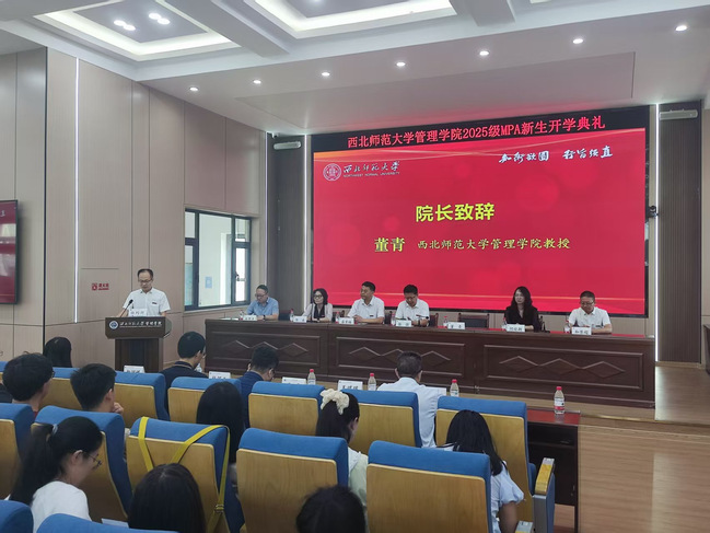 开学典礼在庄严的国歌声中拉开序幕。威廉体育williamhill经理董青代表公司向2025级MPA新生表示诚挚的祝贺和热烈的欢迎,并系统介绍了公司的历史沿革和办学特色,以及在学科发展、人才培养、社会服务和MPA教育方面取得的突出成绩。同时,对2025级MPA新生提出了五点期望:第一,要永葆家国情怀,强化社会责任感与服务意识,将个人理想融入国家发展,始终牢记公共管理人才肩负着推进国家治理现代化、服务高质量发展的使命。第二,要做好科学规划,明确本学习阶段的目标和任务,合理安排时间,在工作、学习、生活方面找到平衡。第三,要锤炼专业素养,以主动求知的热忱与笃实治学的态度,认真学习专业课程,广泛研读文献,构建系统化知识体系,提升理论认知。第四,要增强实干本领,能将课堂所学的政策分析、管理模型等与实际工作场景相融合,解决现实难题,实现学以致用。第五,要不忘初心,珍惜时光,奋力拼搏,实现学有所成,更好地服务社会。