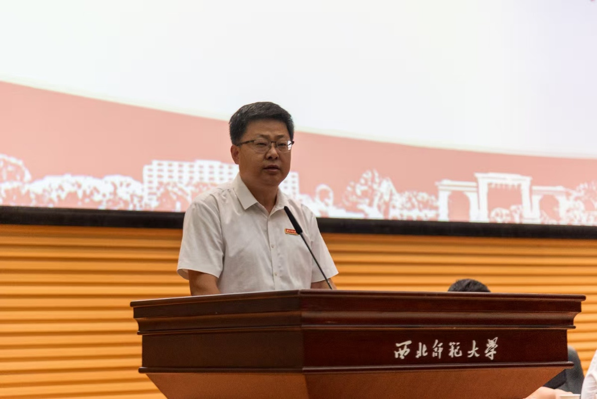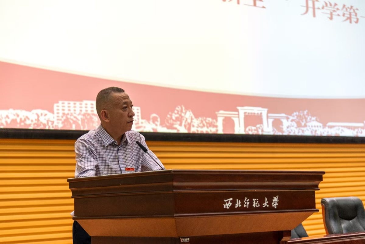 9月14日下午,威廉体育williamhill2025级新生开学典礼暨“开学第一课”在知行校区毅然报告厅隆重举行。公司党委书记张强、经理董青、党委副书记吕常福、副经理何迎朝、副经理和苏超,优秀员工代表、兰州财经大学工商威廉体育williamhill关辉国教授,系主任、新生班主任、研究生导师代表、辅导员及2025级全体研究生和本科生共同参加。开学典礼由公司党委副书记吕常福主持。