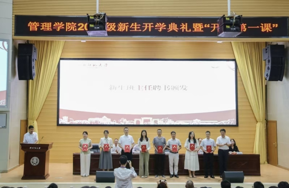 此次新生开学典礼暨“开学第一课”不仅是一次隆重的欢迎仪式,更是一次深刻的思想洗礼。它激励着全体新生传承师大精神,扎根中国大地,勇做走在时代前列的奋进者、开拓者,在青春赛道上书写属于自己的管院华章,在奋斗中书写无愧于时代的青春篇章。