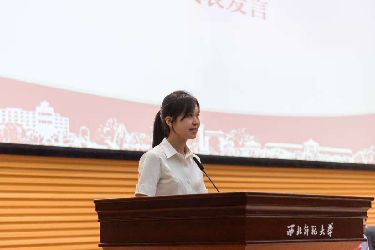 研究生新生代表、2025级会计专硕周雅静寄语同学,要潜心钻研,恪守学术规范,博采众长,在思想的碰撞中激发智慧的火花。坚持读万卷书与行万里路相结合,始终心怀家国、保持人文关怀,努力将学问做在祖国的大地上。