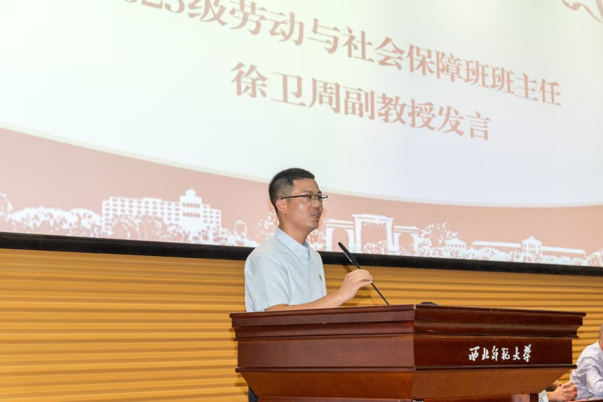 劳动与社会保障班班主任徐卫周副教授作为新生班主任代表发言,愿同学们在新征程中锚定方向,刻苦学习,扎根管理学的深厚土壤,在自律中夯实根基,在自信中绽放光芒,在自强中创造卓越,书写属于自己的青春华章。