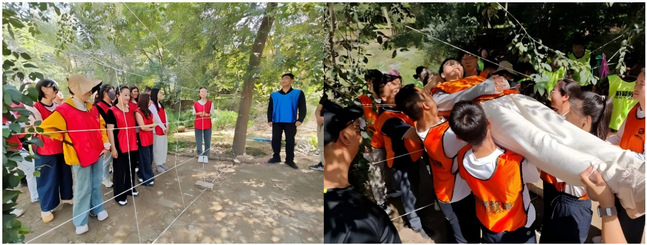 队员们需将同伴托举过网,而“穿越者”必须完全放松身体,将安全交由队友掌控。起初,紧张与犹豫在所难免,但随着一次次成功接力,彼此的信任逐渐筑牢。