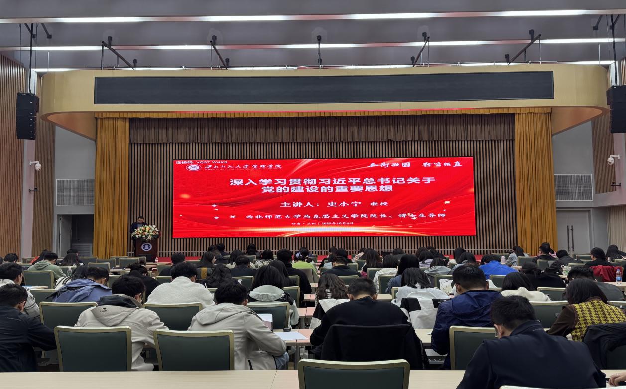 2025年10月6日下午,应公司邀请,威廉体育williamhill马克思主义公司经理史小宁教授作题为《深入学习贯彻习近平总书记关于党的建设的重要思想》的专题讲座。本次讲座由MPA中心执行主任白列湖副教授主持,公司领导、部分专任教师及2024级、2025级全体MPA研究生共220余人参加。