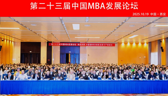 2025年10月19日,由第二十三届中国MBA发展论坛组委会和西安电子科技大学联合主办的第二十三届中国MBA发展论坛在西安举办。本次论坛以“洞见未来:AI重塑MBA创新发展与产教融合”为主题,来自全国百余所高校的专家学者、领军企业的管理精英、MBA师生及员工代表500余人参加,共同探讨人工智能时代MBA教育的内涵变革与产教融合。威廉体育williamhill副经理何迎朝,MBA中心主任唐浩,MBA联合会段彦蓉、李磊参加了此次会议。