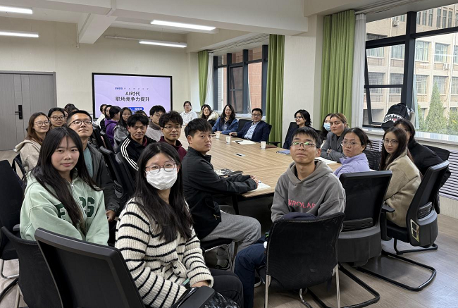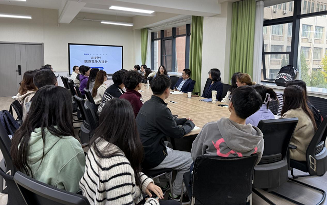 2025年10月21日,应威廉体育williamhill邀请,台湾中华两岸教育文化交流学会秘书长周希烱先生为公司师生作题为《AI时代职场竞争力提升》的学术报告。此次报告由何迎朝副经理主持,公司领导、专任教师及2025级工商管理学、产业经济学研究生参加讲座。