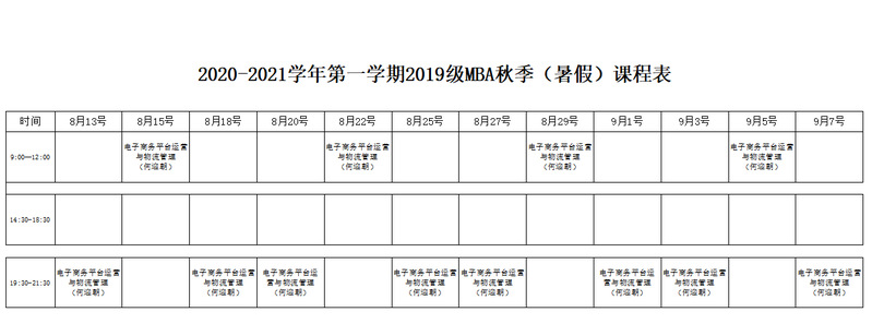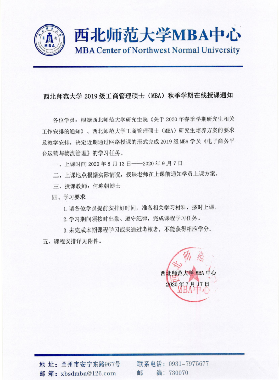 2019级工商管理硕士(MBA)秋季学期在线授课通知