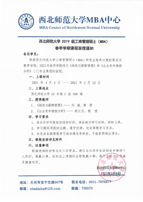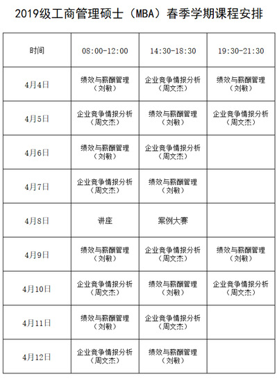 商公司2019级工商管理硕士(MBA)春季学期课程面授通知