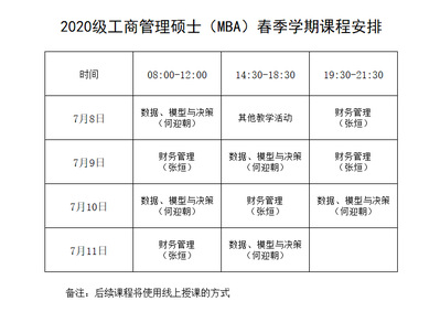 威廉体育williamhill 2020 级工商管理硕士(MBA)春季学期课程面授通知(二)