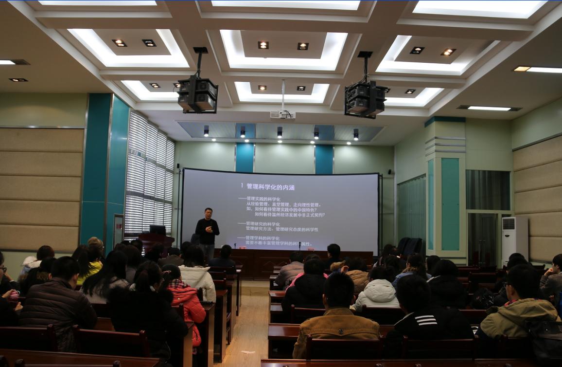 2016年12月16日,教育部长江学者、浙江大学中国科教战略研究院常务副经理魏江教授应邀为公司师生作了题为 “管理科学的理论范式”的学术报告,商公司、旅游公司70余名师生参加了此次报告会,报告会由商公司经理张永丽教授主持。